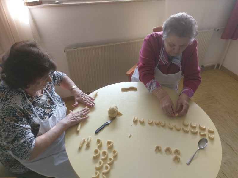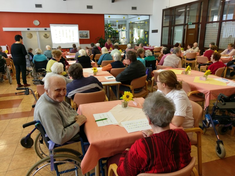 Igrali smo tombolo in pisali spomine. Ko so bile nagrade podeljene in lepe misli s pomočjo prostovoljke Veronike lepo nalimane na plakat, smo se posladkali s piškoti, ki so jih spekli prijatelji iz Altre in naše stanovalke, kuharice pa so nam skuhale kavo. Da bi bilo razpoloženje še boljše je svojo harmoniko raztegnila prostovoljka Boža.
